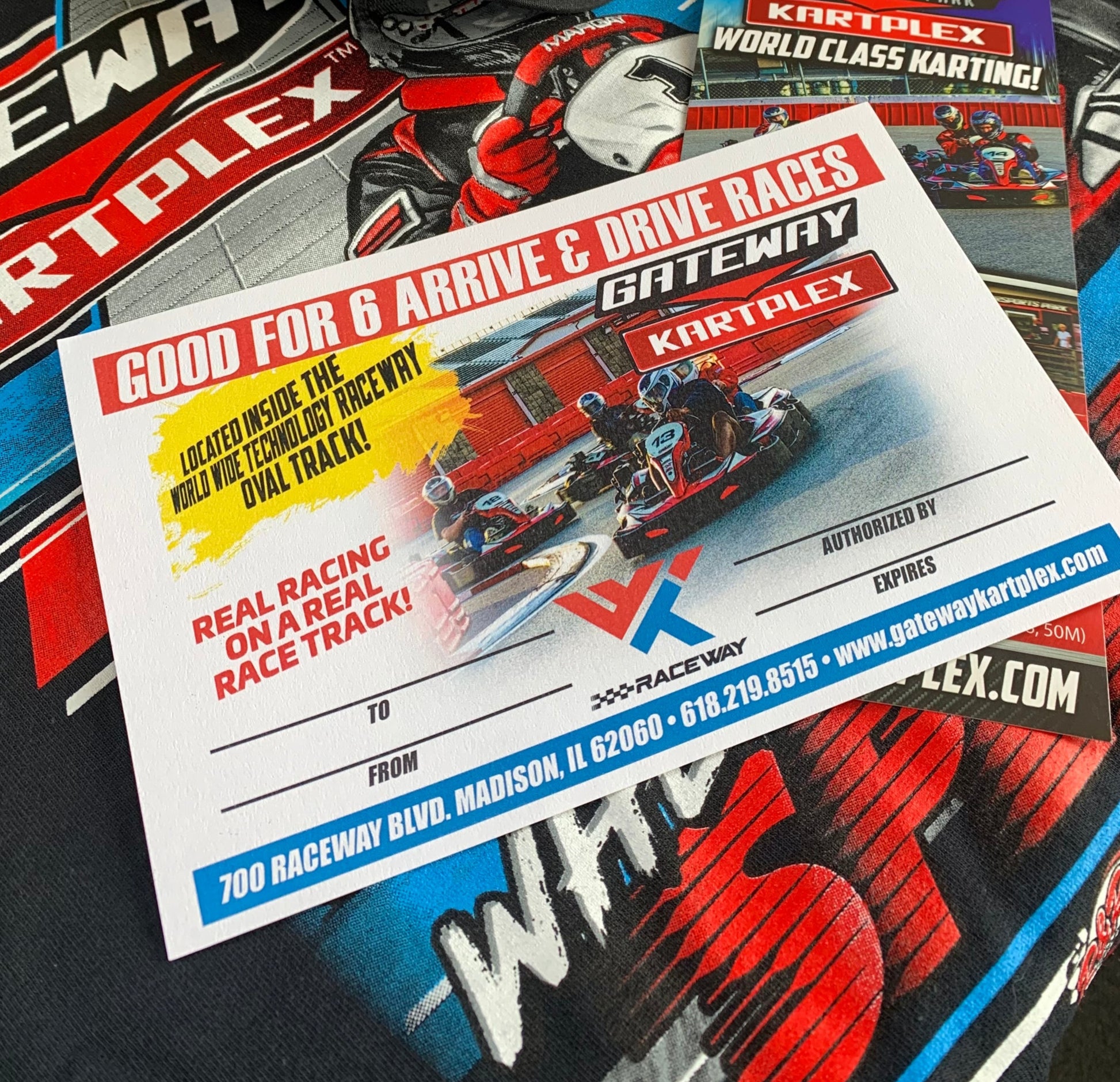 Includes 6 Arrive & Drive races with a T-Shirt or a Hat!